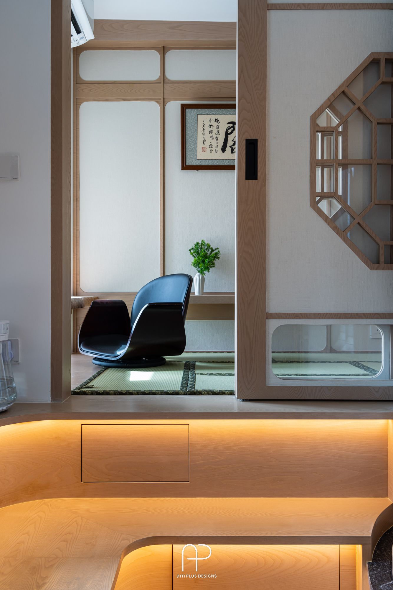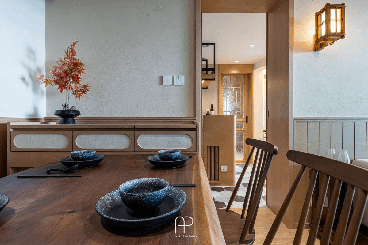 amPLUS Designs 以「新中式庭園風」為設計理念,為映灣園住宅打造充滿自然寫意的家居空間。此設計揉合傳統中式建築特色與現代簡約風格,並巧妙運用自然元素,營造出和諧寧靜的居家氛圍。